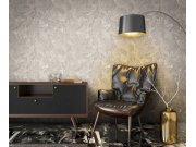 Luxusní pololesklá vliesová tapeta s vinylovým povrchem, šedo-béžový mramor. Foto interiéru je pouze ilustrační - odlišné barvy.