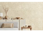Luxusní vliesová tapeta s vinylovým povrchem - jemně plastická textura, odstíny pololesklé krémovo-šedé. Foto interiéru je pouze ilustrační - odlišné barvy.