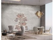 Luxusní vliesový 2dílný dekorativní panel s motivem japonské zahrady v šedých odstínech se stříbrnými detaily a bonsaí v růžové metalické barvě. Kombinovatelná se vzorem Z6479.