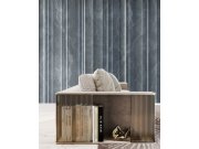 Luxusní geometrická vliesová tapeta s vinylovým povrchem, efektní střídání plastických textur, šedo-modrá místy s kovovým leskem.