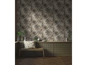 Vliesová tapeta s listy v odstínech hnědé s jemným pololeskem, šedé a bílé.