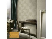Luxusní vliesová tapeta se zlatým a stříbrným plastickým vzorem na béžovém žíhaném podkladu. Šíře role 1,06 m.