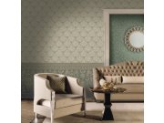 Vliesová tapeta s elegantním metalickým vzorem v zelené barvě na béžovém podkladu v imitaci štuku. . Šíře role 1,06 m.