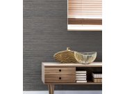 Vliesová tapeta s jemně plastickou texturou. Imitace bambusové rohože v pololesklých tónech černé, antracitové a hnědé.