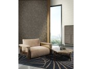 Vliesová tapeta s vinylovým povrchem a bohatým ornamentálním vzorem v bronzovo-hnědých odstínech se zlatým odleskem. Podklad je vzor šedo-černého štuku.