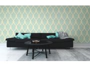 Vliesová tapeta s vinylovým povrchem a látkovou texturou. Jemně plastický zámecký ornamentální vzor se zlatými odlesky.