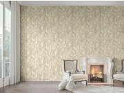 Vliesová tapeta s vinylovým povrchem a látkovou texturou. Jemně plastický zámecký ornamentální vzor se zlatými odlesky.