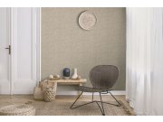 Plastická tapeta s jemnou strukturou a s výrazným kovovým efektem v šedobéžové barvě dodá interiéru luxus a styl.