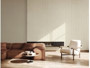 Luxusní vliesová tapeta s vinylovým povrchem, pololesklá textura v béžových odstínech, úzké proužky s vyšším leskem. Proužky cca 2,2 až 2,5 a 0,5 až 0,9cm. Co vás zaujme: kvalita zpracování, vysoká odolnost. Design: luxusní, glam. Úroveň tapetování: pro z