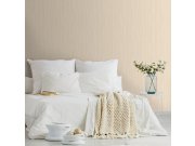 Luxusní vliesová tapeta s vinylovým povrchem, geometrické vzory, látková textura, krémový pololesk. Foto interiéru je pouze ilustrační - odlišné barvy.
