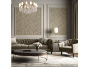 Luxusní metalická vliesová tapeta v béžové barvě s plastickou zlatou texturou na podkladě imitující štukovou omítku.