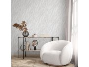 Luxusní vliesová tapeta v bílé barvě s plastickým stříbrným geometrickým vzorem na podkladě imitující štukovou omítku. Foto interiéru je pouze ilustrační - odlišné barvy.