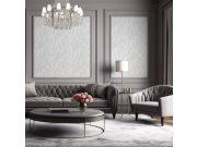 Luxusní metalická vliesová tapeta v bílé barvě s plastickou stříbrnou texturou na podkladě imitující štukovou omítku.