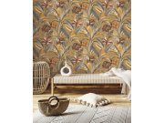 Vliesové tapety s vinylových povrchem inspirované přírodou - tropické listy, květiny a ptáci - na tapetách dochází ke spojení hedvábné textilie a výrazných metalických textur, které dodá vašemu interiéru luxus a styl. Oranžový podklad s jemným pololeskem,