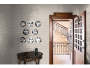 Kolekce tapet je inspirována přírodními materiály, jako je dřevo, kov, kůže a sádra. Tapety na zeď Materea kombinují barvy s abstraktním nebo geometrickým dekorativním efektem s kovovými odlesky.