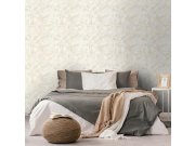Luxusní vliesová tapeta s vinylovým povrchem, podklad hrubší béžová látková textura, bohatý květinový vzor v jemných odstínech béžové, hnědé, fialové a žluté.