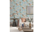 Vliesová tapeta s květinovým vzorem na modrém podkladu - zřetelné tahy štětce, plastický efekt.