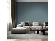 Luxusní hrubě strukturovaná vliesová tapeta s textilní strukturou a jemnými tmavě tyrkysovými a fialovými metalickými linkami. Podklad vlies, povrch omyvatelý vinyl.