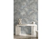 Luxusní, plastická, vliesová tapeta s vinylovým povrchem, odstíny modré, tropické listy šedo-modré s metalickým pololeskem. Co vás zaujme: vysoká odolnost, propracované detaily. Design: moderní, tropický, luxusní. Úroveň tapetování: pro začátečníky. Země