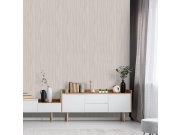 Luxusní vliesová tapeta s vinylovým povrchem, béžové geometrické vzory, látková textura, šedo-hnědý pololesk.