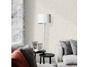 Šedo-béžová vliesová tapeta s vinylovým povrchem, drobný plastický geometrický vzorek. Foto interiéru je pouze ilustrační - odlišné barvy.