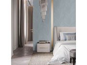 Luxusní vliesová tapeta s vinylovým povrchem - plastická látková textura, odstíny pololesklé modré a šedo-stříbrné. Foto interiéru je pouze ilustrační - odlišné barvy.