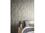 Šedo-stříbrná vliesová tapeta na zeď, metalické efekty, bronzová stébla trávy.