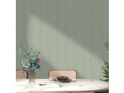 Luxusní zelená vliesová tapeta s vinylovým povrchem, efektní proplétaný vzor s metalickým leskem. Foto interiéru je pouze ilustrační - odlišná barva.