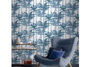 Vliesová tapeta s motivem modrých banánovníků a palem vytvoří v interiéru příjemnou atmosféru.