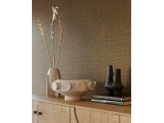 Luxusní vliesová tapeta s vinylovým povrchem, drobná plastická kolečka tvoří efektní šupinový vzorek, barva hnědá s jemným zlatým pololeskem. Foto interiéru je pouze ilustrační - odlišné barvy.