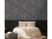Luxusní vliesová tapeta s výraznou strukturou betonu s geometrickými tvary na tmavě šedém podkladu se stříbrným žíháním.