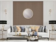 Luxusní hnědo-zlatá tapeta na zeď s geometrickými ornamenty. Foto interiéru je pouze ilustrační - odlišné barvy.