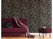 Luxusní vliesová tapeta tmavě šedá s výraznou látkovou strukturou s dekorem stříbrných listů.