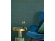 Luxusní hrubě strukturovaná vliesová tapeta s textilní strukturou a jemnými tmavě tyrkysovými a fialovými metalickými linkami. Podklad vlies, povrch omyvatelý vinyl.