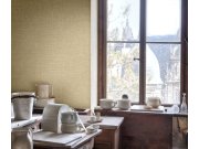 Metalické tapety vnášejí do interiéru dotek luxusu. Moderní, efektní vliesová tapeta s netradičnín designem, - podklad jemná hnědá pololesklá textilie, textura tapety tvořená zlatými metalickými "vlákny" .