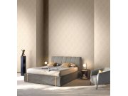 Šíře role 1,06 m. Luxusní vliesové tapety s vinylovým povrchem inspirované krásou orientálních látek - velký ornamentální vzor v odstínech zlaté, podklad béžový s metalickým pololeskem. Snadno zkombinujete se souvisejícími tapetami.