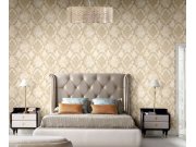 Luxusní zlato-béžová vliesová tapeta s vinylovým povrchem, zlatý zámecký vzor. Foto interiéru je pouze ilustrační - odlišné barvy.