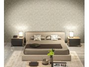 Luxusní vliesová tapeta s vinylovým povrchem s neobvyklým vzorem - plastické vlnky a lístky v béžovém odstínu se stříbrným a zlatým vzorem větviček s květinami a lístky.