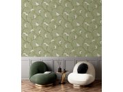 Vliesová tapeta s květinovým vzorem na zeleném podkladu - zřetelné tahy štětce, plastický efekt. Foto interiéru je pouze ilustrační.
