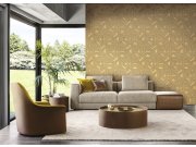 Luxusní jemně strukturovaná hnědá vliesová tapeta s jemným pololeskem, hladké zlaté ornamenty.