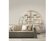 Luxusní metalická hnědo-stříbrná vliesová tapeta s geometrickým vzorem v art deco stylu. Foto interiéru je pouze ilustrační - odlišné barvy.
