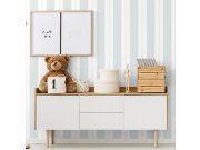 Vliesová pruhovaná tapeta na zeď, odstíny mentolové, bílé a béžové. Tapeta nejen do dětského pokojíčku.