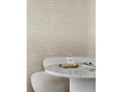 Metalická béžová vliesová tapeta na zeď, nepravidelné matné bílé plastické linie.