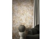 Luxusní šedá vliesová tapeta na zeď, bronzové metalické efekty, imitace vintage omítky.