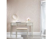 Vliesová tapeta s kvalitním papírovým povrchem - metalický béžovo-růžový podklad, větvičky tvořené z drobných skleněných perliček.