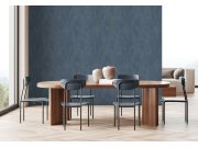 Luxusní modrá vliesová tapeta s vinylovým povrchem, plastický geometrický vzor s metalickým pololeskem. Foto interiéru je pouze ilustrační - odlišné barvy.