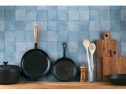 Luxusní hrubě strukturovaná vliesová tapeta s vinylovým povrchem s dekorem modrých dlaždic. Velikost dlaždice cca 10,5x10,5cm.