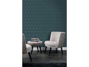 Modrá vliesová tapeta, metalické obrysy trojúhelníků 347715, City Chic, Origin