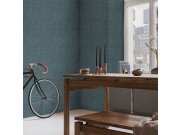 Modrá / teal / vliesová tapeta na zeď, imitace hrubší textilie.