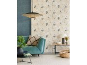 Vliesová tapeta na zed, světle béžový podklad, motivy šalvějově listů a modrých granátových jablek. Co vás zaujme: netradiční přírodní motivy. Design: nadčasový. Úroveň tapetování: pro začátečníky. Země původu: Velká Británie.